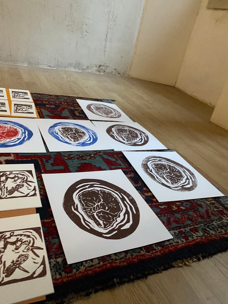 Préparation de l’exposition à l’Atelier Sainte Croix des Arts du 4 au 23 décembre ( tous les jours de 15 à 19h)